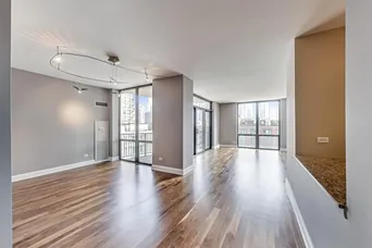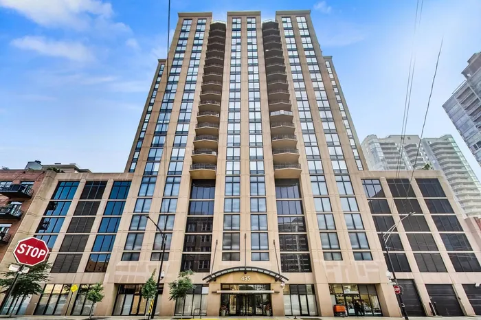 Spectacular oversized SE corner 2 bed 2.5 bath in the heart of River North! Step through the foyer into this expansive open concept living space w/ floor-to-ceiling windows flooded with light, panoramic city views, & a large east facing balcony. The kitchen was designed shaker 42" contemporary cabinetry, newer ss refrigerator, & breakfast bar. Large Primary suite w/ walk-in closet, blackout shades, and spa-like en-suite bathroom w/ a double vanity, & soaking tub/shower combo. Generous 2nd bedroom w/ space for dual work from home environment/guest bedroom and en-suite bath w/ walk-in shower. Only unit in tier w/ an additional 1/2 bathroom off the living space. Other features and improvements include wood flooring throughout & NEW Walnut hardwood flooring within the living space/ 2nd bedroom, split bedrooms, & an abundance of storage. Full amenity building with 24 hour door staff, sundeck, exercise room, party room, & business center. Wonderful River North location steps from brown line, Montgomery Ward Park, restaurants, bars, and easy access to the highway! 1 prime garage parking space available for additional 30K. Must see!