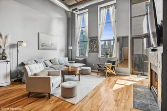Get ready to be blown away by this one of a kind 2 bed 2 bath River North condo featuring soaring 16 foot ceilings. This rarely available east-facing unit offers an abundance of natural light and stunning city views with the Hancock Tower to the East and the Willis Tower to the South. The open-concept living and dining areas flow seamlessly from the kitchen, complete with a cozy gas fireplace. Beautiful hardwood floors create a warm and inviting atmosphere, leading you to your private balcony where you can enjoy your morning coffee and unwind after a long day. The king-size primary suite is a retreat, showcasing tall windows, newer carpeting, and three build out closets. The en suite bathroom features a double vanity and a luxurious soaking tub. The split floor plan enhances privacy with a second bedroom filled with ample storage and a full bath off the foyer, making it ideal for guests or a home office. Additional highlights include an in-unit washer and dryer, indoor heated parking ($20k) and a storage unit adding to the ease of living. The building offers a range of amenities, including two roof decks with grills and lounges, gym and bike storage, on-site staff adds an extra layer of security and comfort. Enjoy the perfect blend of urban excitement and residential tranquility, steps away from river, Montgomery Park and iconic Erie Cafe! Seller to pay for $16,253 Special Assessment for Exterior Masonry at closing.