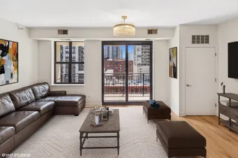 This sleek and contemporary one-bedroom, one-bathroom condo is located in the heart of Chicago's vibrant River North neighborhood, offering the perfect blend of modern comfort and urban convenience. Step into an open-concept living space featuring brand new flooring and abundant natural light due to the Southern exposure. The well-appointed kitchen is outfitted with stainless steel appliances, granite countertops, large island, and ample cabinetry, making it as functional as it is attractive. The spacious living area flows seamlessly onto a private balcony-perfect for enjoying your morning coffee or unwinding after work with golden hour views of the city. The generously sized bedroom easily fits a king sized furniture set and includes a walk-in closet and full en-suite bathroom finished with modern fixtures and dual vanity. For added convenience, the unit includes in-unit laundry and one secure garage parking space. Residents of this full-amenity building enjoy 24-hour door staff, a fitness center, pet-friendly policies, and additional storage. Located just minutes from the Chicago River, top-tier restaurants, galleries, nightlife, and public transit, this home places you at the center of everything River North has to offer. Don't miss your chance to own a stunning condo in one of the city's most dynamic neighborhoods.