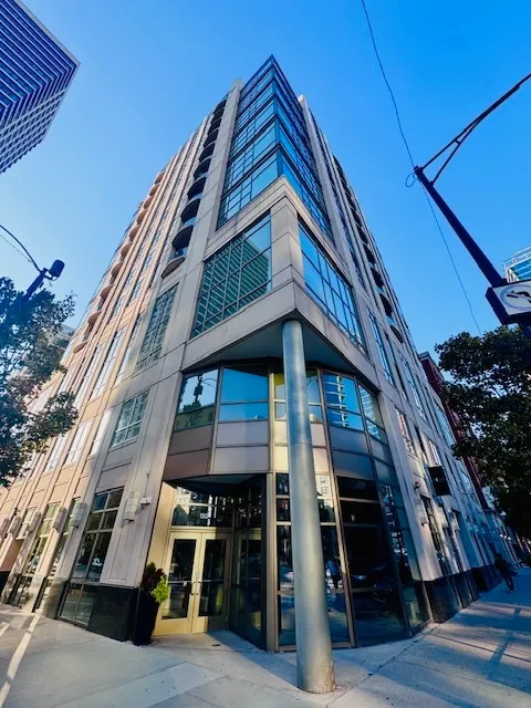 Dramatic River North Duplex with Skyline Views! Soaring 15-foot ceilings, floor-to-ceiling windows, and sweeping northwest skyline views define this stunning duplex home in the heart of River North. Located in a boutique 54-unit doorman/elevator building, the residence offers an ideal blend of volume, light, and modern design. The main level showcases ebony-finished Brazilian cherry hardwood floors, recessed lighting, and a gas fireplace with granite surround. The chef's kitchen features thick granite countertops, undermount sink, tall cabinetry, and commercial-grade Wolf and GE Monogram stainless steel appliances-plus a rare oversized storage loft above. The second bedroom overlooks the living/dining area with a dramatic wall of windows and access to a private balcony. Upstairs, the spacious primary suite comfortably accommodates a king bed and additional furniture, with a walk-in closet and spa-like marble bath with dual vanity and a steam shower. Additional highlights are in-unit laundry and deeded garage parking (offered for an additional fee), a private storage closet, bike storage, and professional management within a well-run association. Unbeatable River North location-just steps from Michigan Avenue, the Riverwalk, East Bank Club, Old Town, CTA trains, parks, and more. Stop Looking. Start Living!