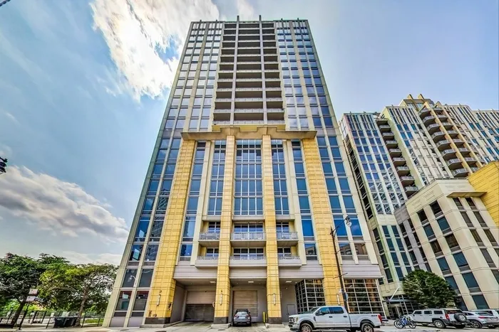 Stunning, sun-drenched southwest corner 2 bedroom / 2 bathroom plus den residence in River Place on the Park, one of River North's most desirable full-amenity buildings. This premier-tier home offers unobstructed south and west views overlooking the Chicago River, Montgomery Ward Park, and the city skyline-truly spectacular from every room. Floor-to-ceiling windows flood the home with natural light and open to a walk-out balcony from the living room, perfect for taking in the breathtaking skyline, river, and park views. The open-concept layout features hardwood floors throughout, a split-bedroom floor plan with both bedrooms fully enclosed, and a bonus den ideal for a home office. The kitchen is beautifully appointed with stainless steel appliances, 42" cabinetry, granite countertops, custom tile backsplash, a built-in pantry, and an oversized island with breakfast bar. The living area includes a gas fireplace and dedicated dining space, creating a comfortable and functional entertaining layout. The spacious primary suite offers two closets, including a professionally organized walk-in, and a spa-like bath with dual vanity, soaking tub, and separate shower. The home has been freshly painted and thoughtfully updated throughout. River Place on the Park is a full-amenity building featuring a 24-hour door staff, on-site property manager, fitness center, and beautifully maintained common areas. Unbeatable location steps to the Riverwalk, dog park, playgrounds, Erie Cafe, East Bank Club, Starbucks, public transportation, and easy access to I-90/94. Two heated garage parking spaces and storage included. A rare opportunity to own a turnkey corner home with iconic Chicago views in one of River North's best locations.