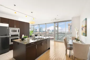 OH CANCELLED. Bright and architecturally significant, this 1-bedroom plus den, 1.5-bath residence at Kingsbury on the Park includes one heated garage parking space and defines sophisticated urban living. Floor-to-ceiling windows flood the open-concept layout with brilliant western light and gorgeous sunsets over the Chicago River. The interior features handsome bamboo flooring and a chef-inspired kitchen with a massive island, perfect for hosting against a backdrop of the water. A dedicated den offers a quiet workspace, while the primary suite serves as a private retreat with a custom-organized walk-in closet and en-suite bath. Enjoy in-unit laundry, a private balcony, and full-service amenities including 24-hour door staff, a fitness center, and a newly renovated lobby. Ideally located moments from the East Bank Club, CTA Brown & Purple Lines, and the expressway, this home is a premier investment on the cusp of a world-class neighborhood evolution. Your view overlooks the greenest chapter of the expansion: a new 2-acre public park and 2,000-foot Riverwalk extension. With the hotel tower strategically offset, you enjoy open skies and lush park vistas; the ultimate mix of residential tranquility and future value.